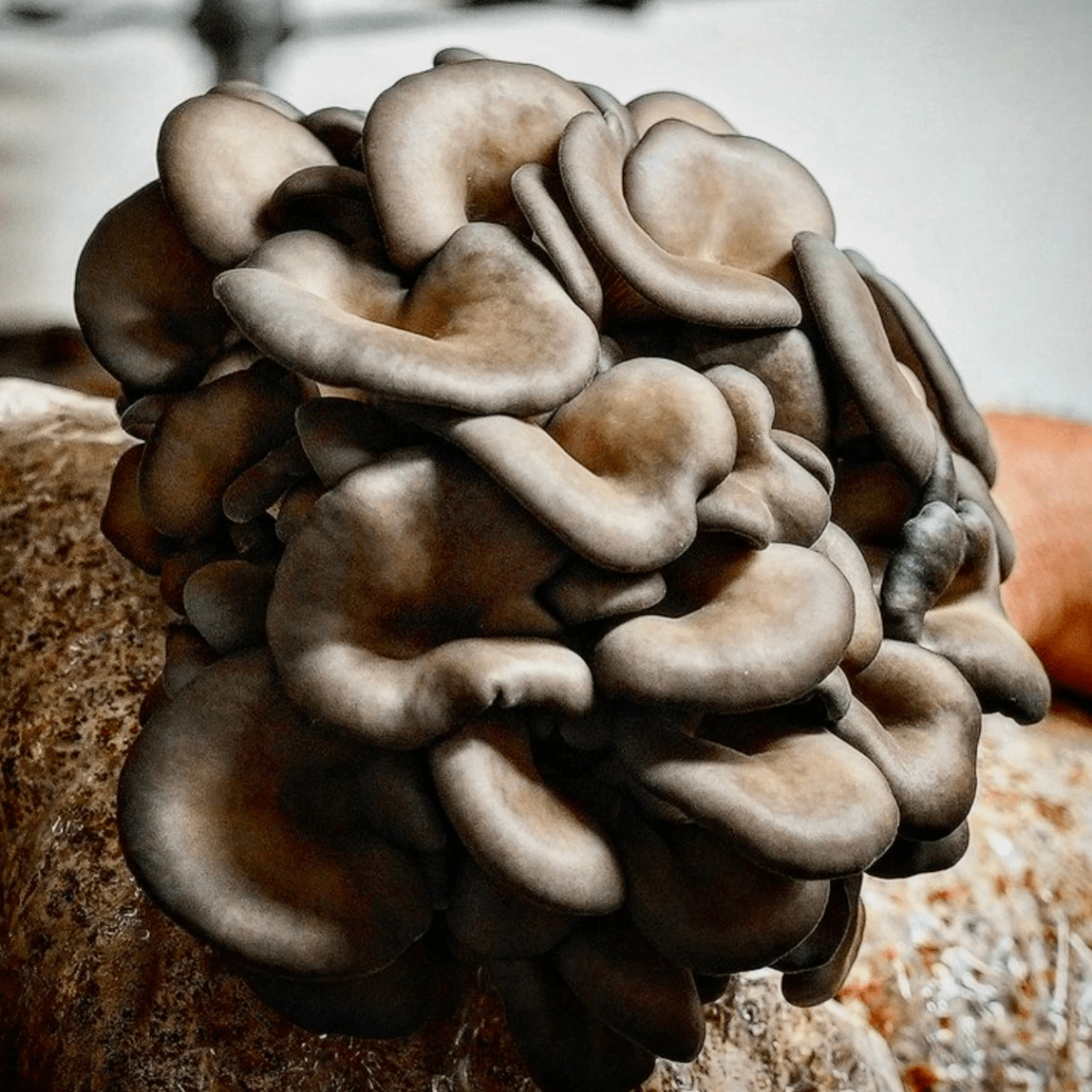Freshly harvested Blue Oyster Mushrooms cultivated with care, offering exceptional flavour and rich nutritional value from farm to plate.
